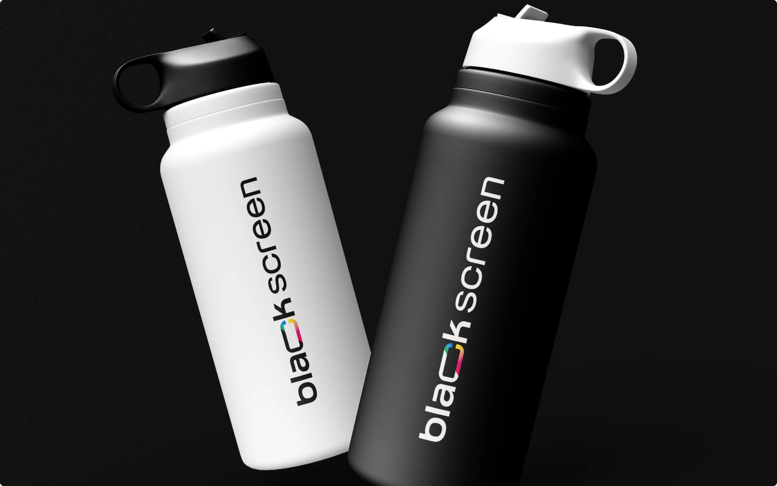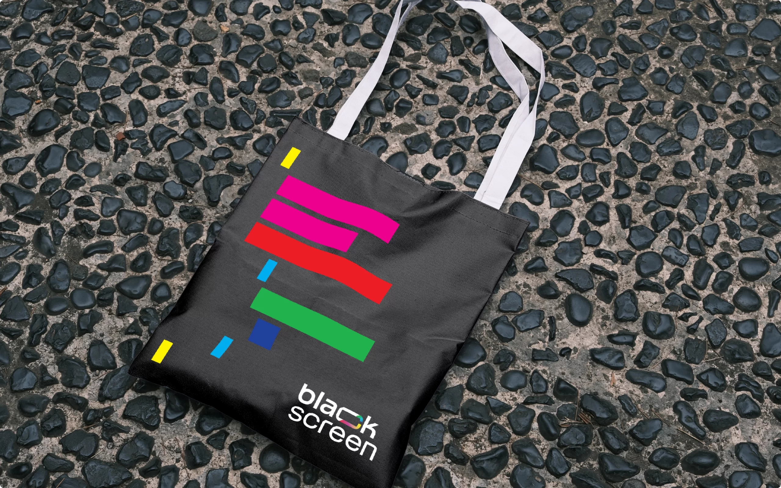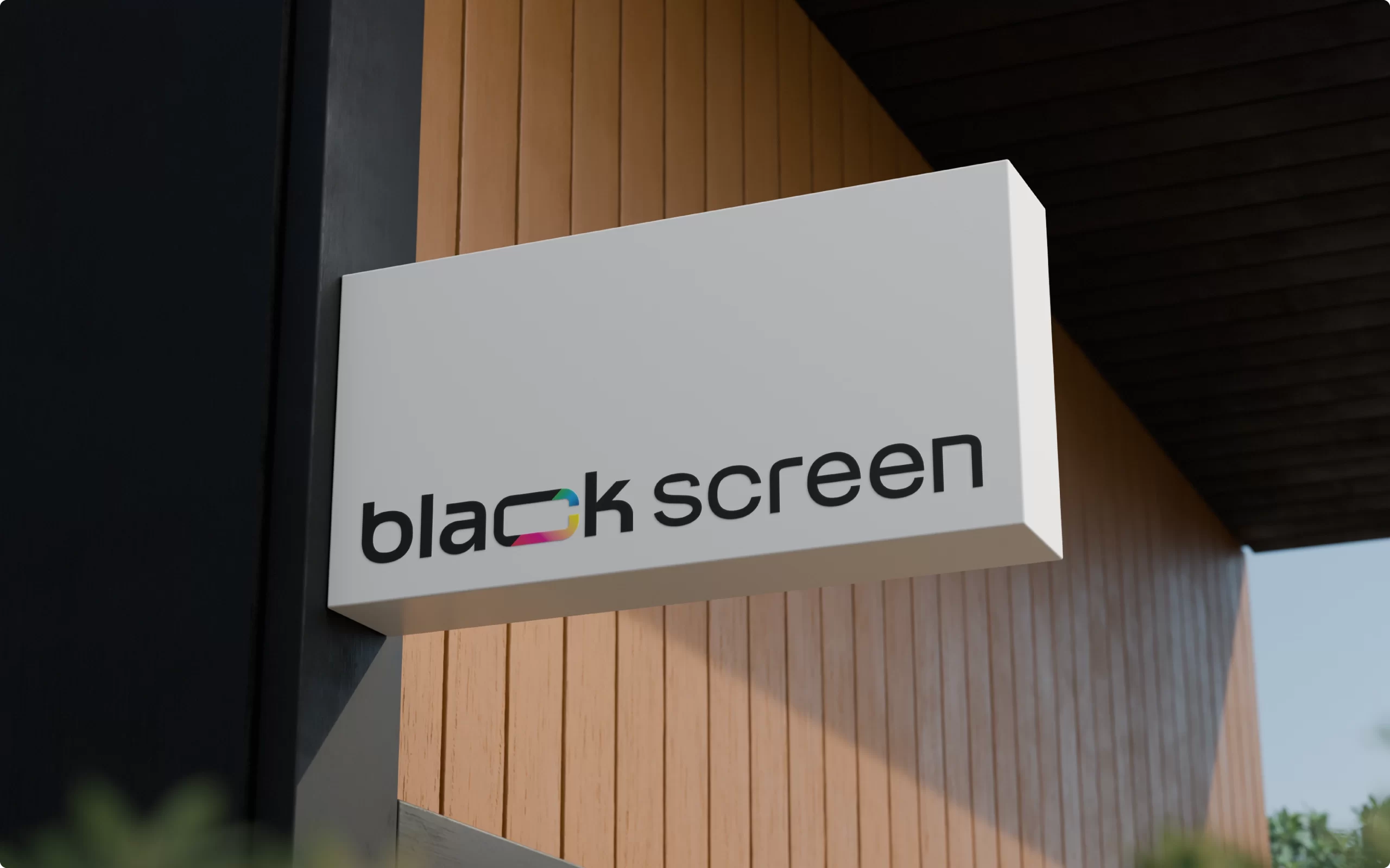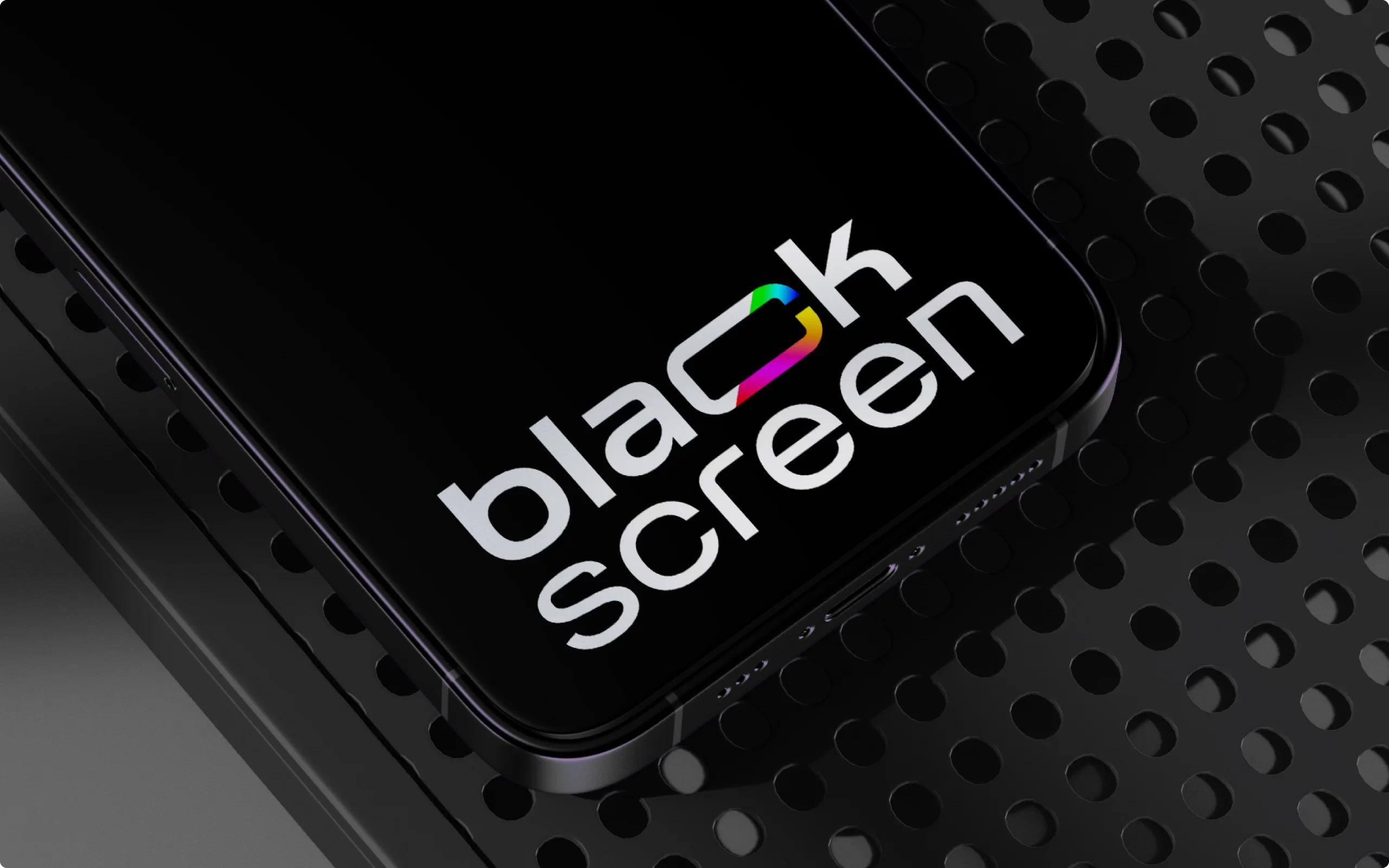 O destaque está na letra C, que traz um corte transversal revelando um mix vibrante de cores inspirado na paleta RGB e nos caracteres coloridos presentes nas linhas de código. Essa fusão entre o preto absoluto e o brilho das cores simboliza criatividade, agilidade e a capacidade da Blackscreen de unir o rigor técnico do desenvolvimento com o frescor da imaginação. Um projeto de branding que reforça posicionamento, propósito e presença digital.