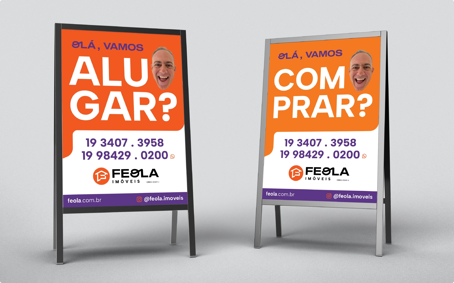 Com mais de 45 anos de experiência no mercado, a Feola Imóveis é referência em locação, gestão de aluguéis e intermediação de compra e venda. Tivemos a missão de redesenhar a marca para refletir sua essência: conectar pessoas aos imóveis ideais de forma descomplicada, atenciosa e eficiente.