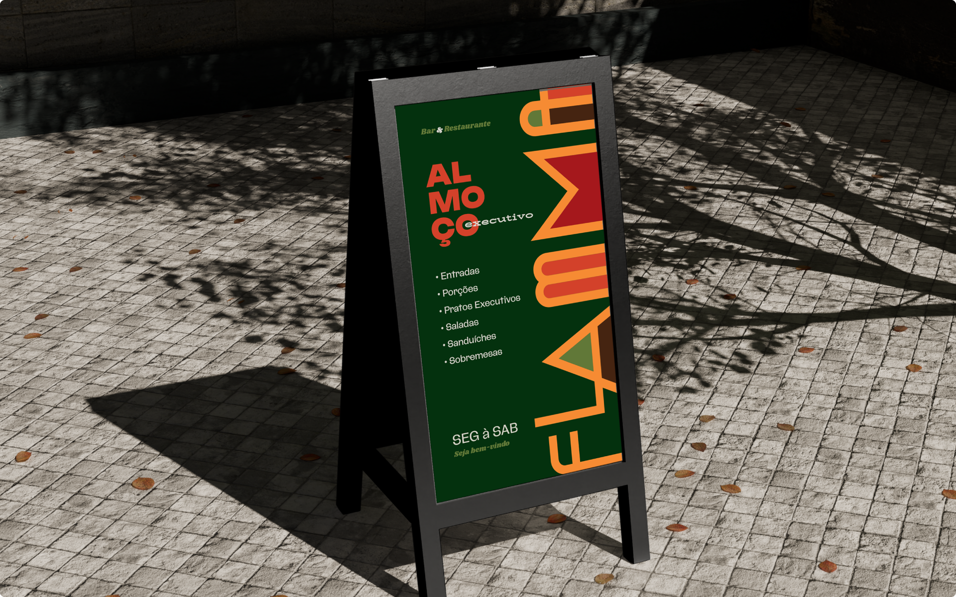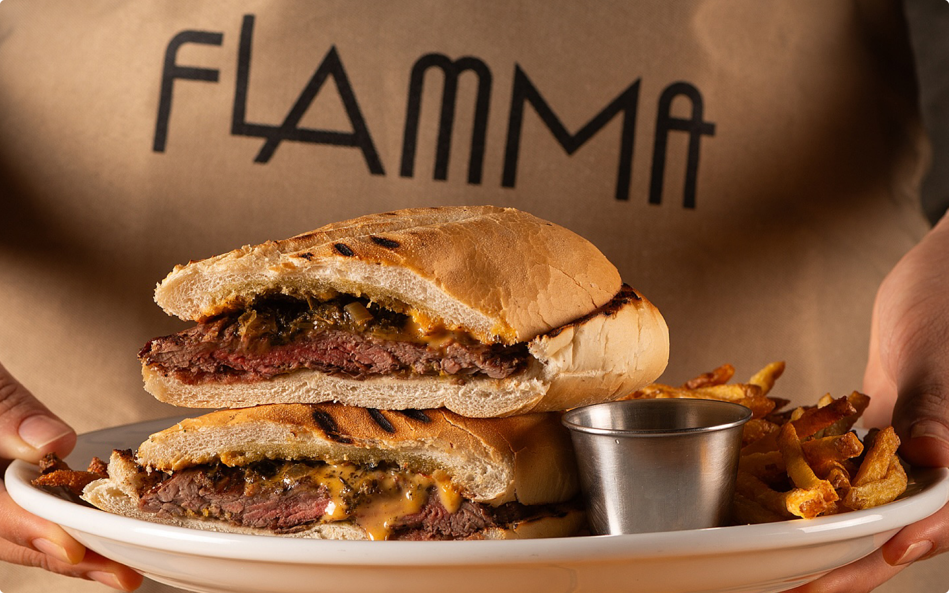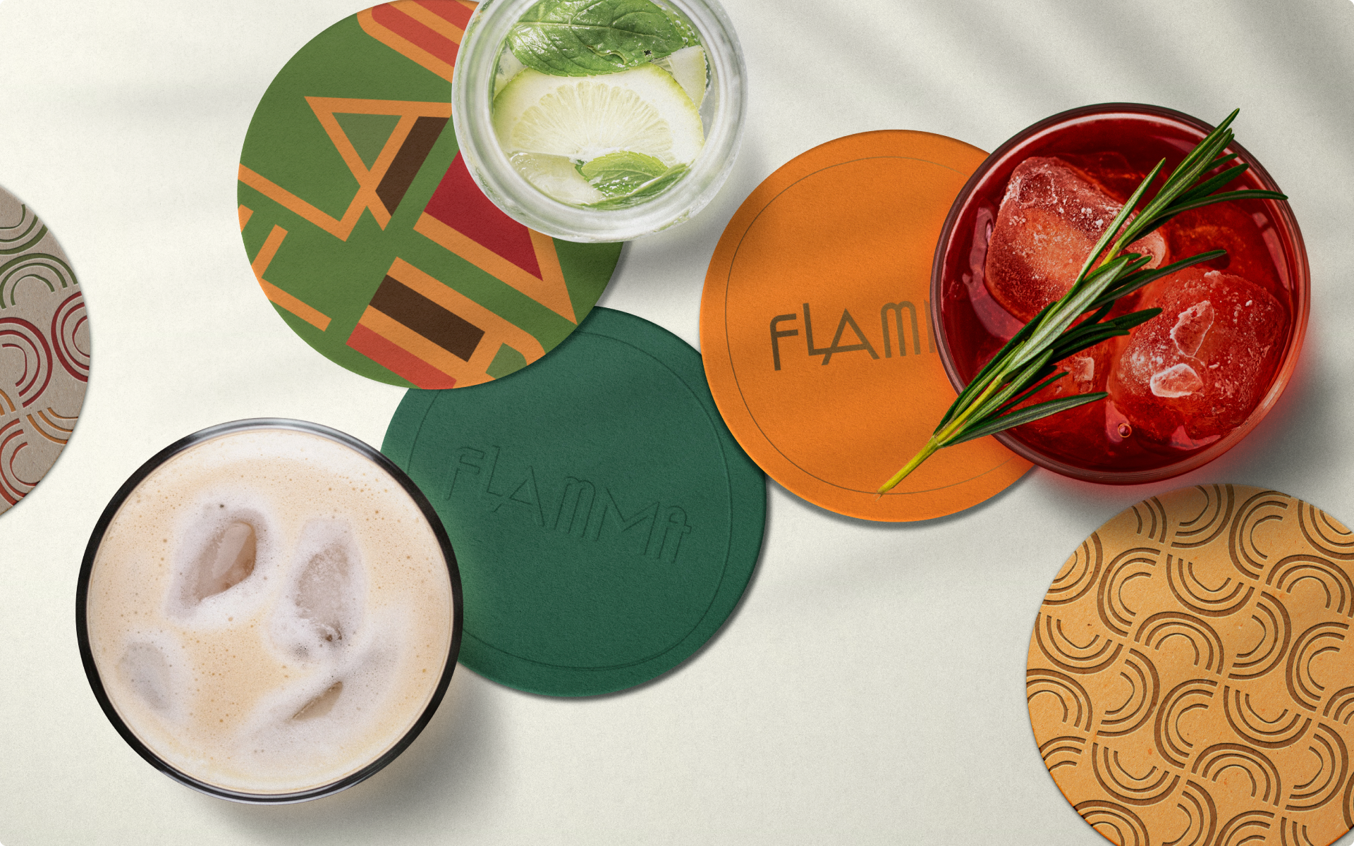 Inspiramo-nos no amor do Flamma pela gastronomia e, principalmente, pela coquetelaria — desde o início, seu grande carro-chefe. A partir dessa essência, buscamos referências nos pôsteres icônicos das décadas de 40 e 50, de grandes marcas de bebidas e do universo da mixologia.